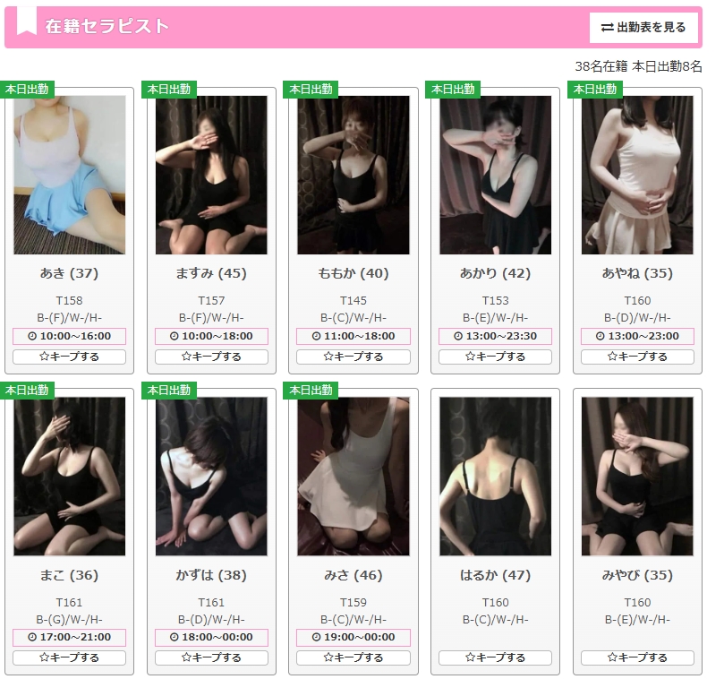 本日出勤状況です。ご予約お待ちしております。